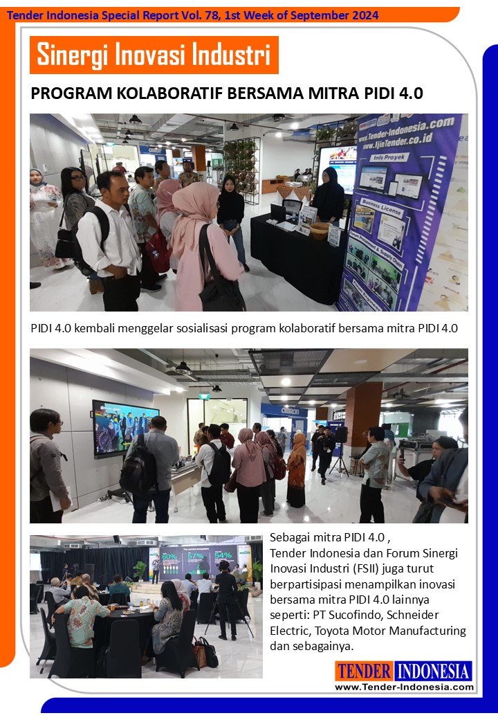 PIDI 4.0 kembali menggelar sosialisasi program kolaboratif bersama mitra PIDI 4.0. Sebagai mitra PIDI 4.0, Tender Indonesia dan Forum Sinergi Inovasi Industri (FSII) juga turut berpartisipasi menampilkan inovasi bersama mitra PIDI 4.0 lainnya seperti: PT Sucofindo, Schneider Electric, Toyota Motor Manufacturing dan sebagainya.