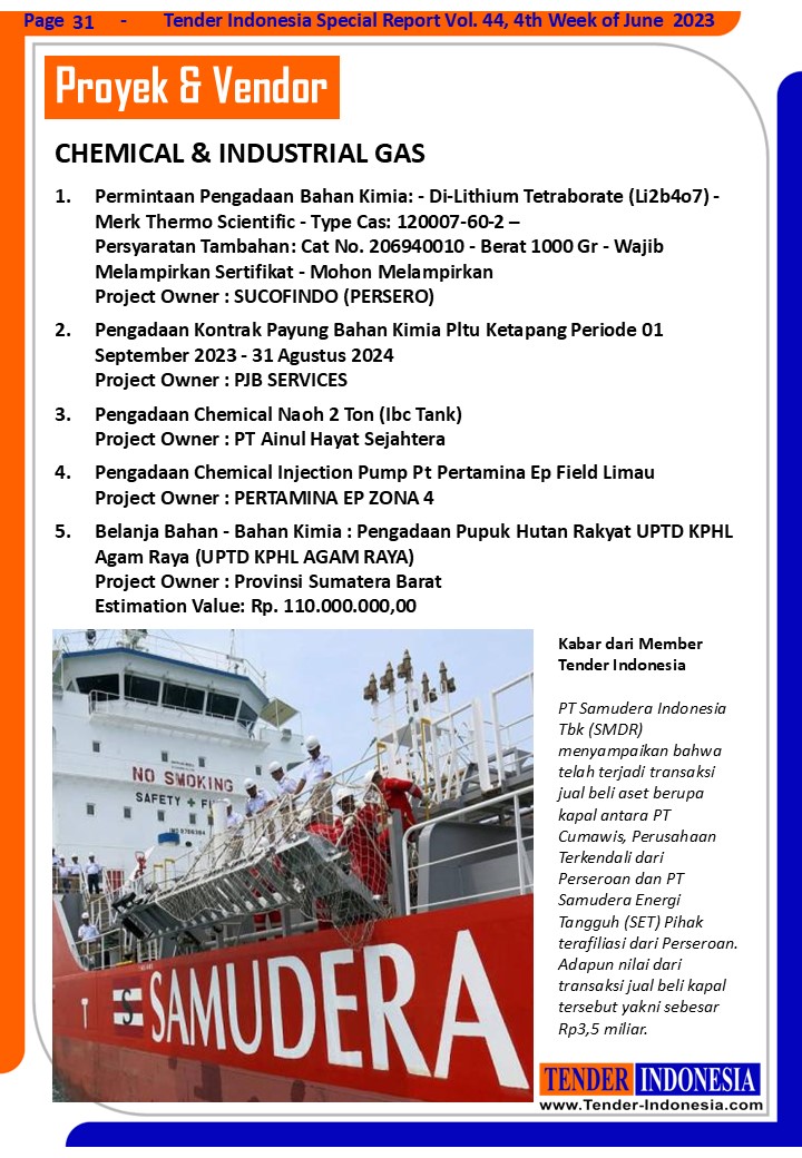 PT Samudera Indonesia Tbk (SMDR) menyampaikan bahwa telah terjadi transaksi jual beli aset berupa kapal antara PT Cumawis, Perusahaan Terkendali dari Perseroan dan PT Samudera Energi Tangguh (SET) Pihak terafiliasi dari Perseroan. Adapun nilai dari transaksi jual beli kapal tersebut yakni sebesar Rp3,5 miliar.