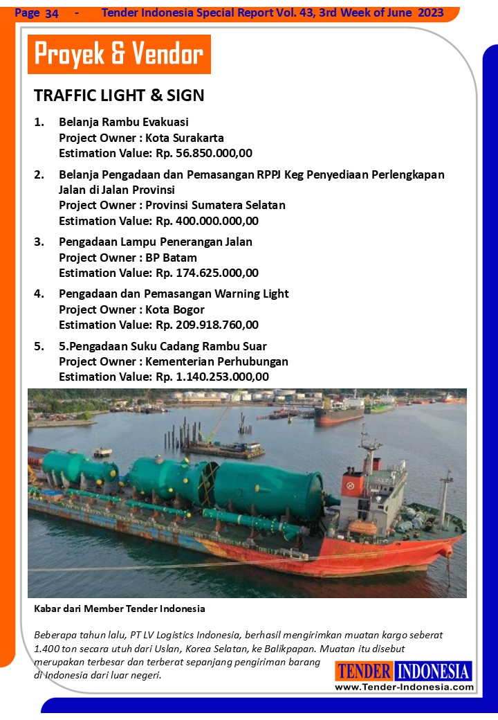 Beberapa tahun lalu, PT LV Logistics Indonesia, berhasil mengirimkan muatan kargo seberat 1.400 ton secara utuh dari Uslan, Korea Selatan, ke Balikpapan. Muatan itu disebut merupakan terbesar dan terberat sepanjang pengiriman barang di Indonesia dari luar negeri.