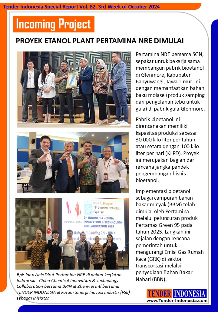 Pertamina NRE bersama SGN, sepakat untuk bekerja sama membangun pabrik bioetanol di Glenmore, Kabupaten Banyuwangi, Jawa Timur. Ini dengan memanfaatkan bahan baku molase (produk samping dari pengolahan tebu untuk gula) di pabrik gula Glenmore.