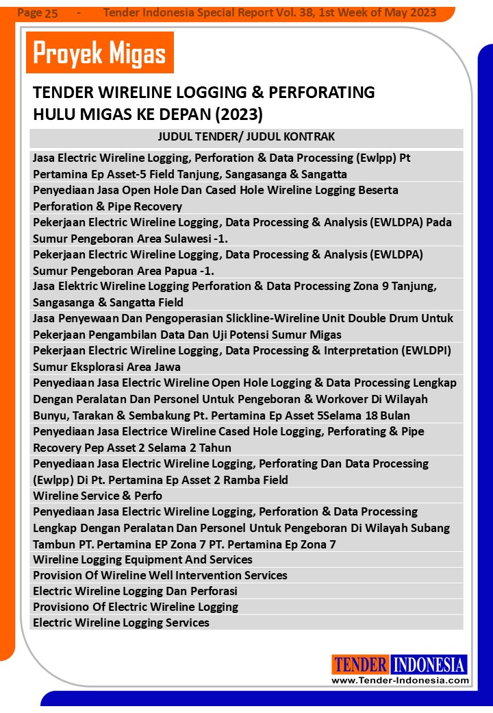 Tender Wireline Logging & Perforating Hulu Migas Ke Depan (2023)