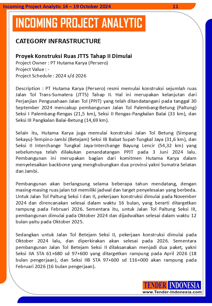 Project Owner : PT Hutama Karya (Persero) Project Value : - Project Schedule : 2024 s/d 2026