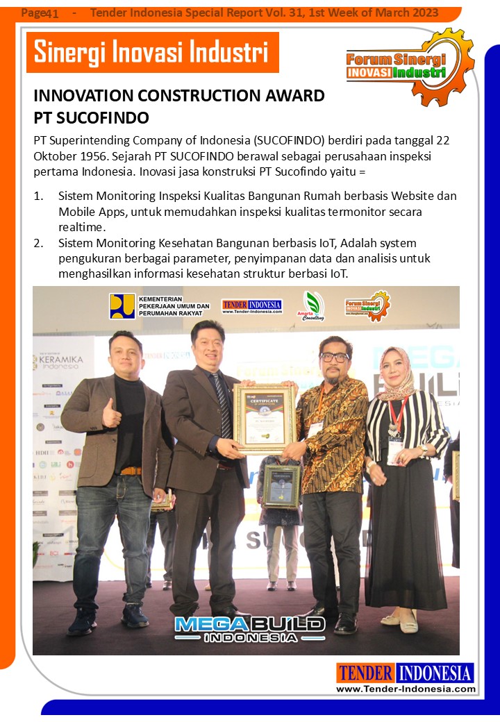 PT Superintending Company of Indonesia (SUCOFINDO) berdiri pada tanggal 22 Oktober 1956. Sejarah PT SUCOFINDO berawal sebagai perusahaan inspeksi pertama Indonesia. Inovasi jasa konstruksi PT Sucofindo yaitu: