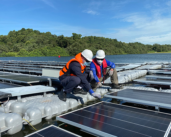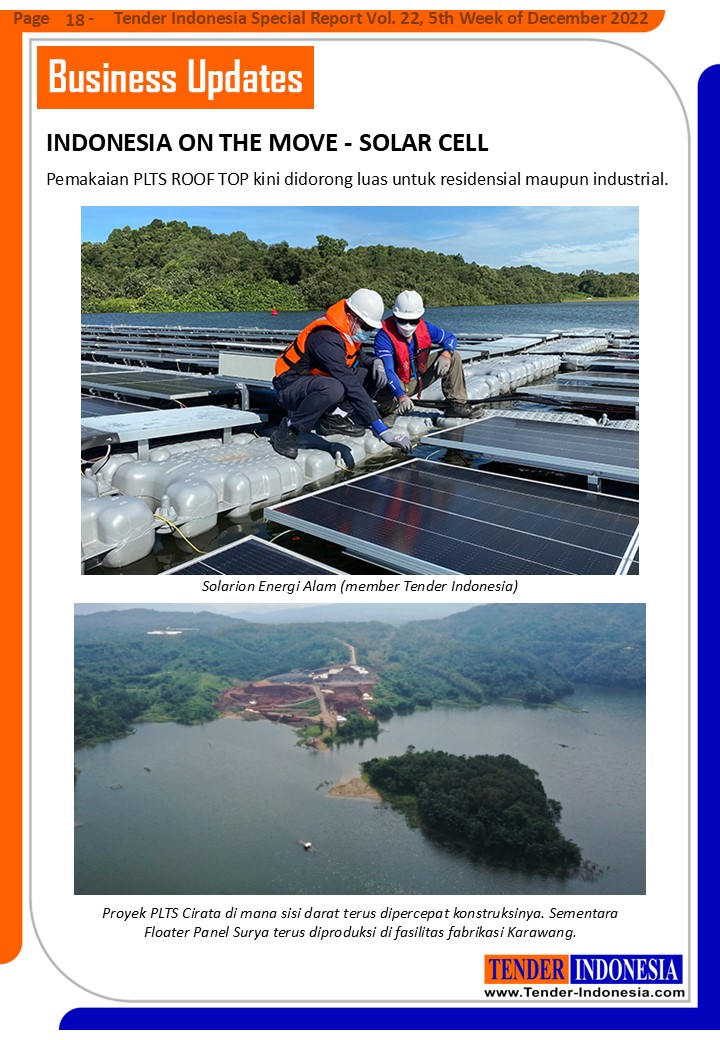 Proyek PLTS Cirata di mana sisi darat terus dipercepat konstruksinya. Sementara Floater Panel Surya terus diproduksi di fasilitas fabrikasi Karawang.