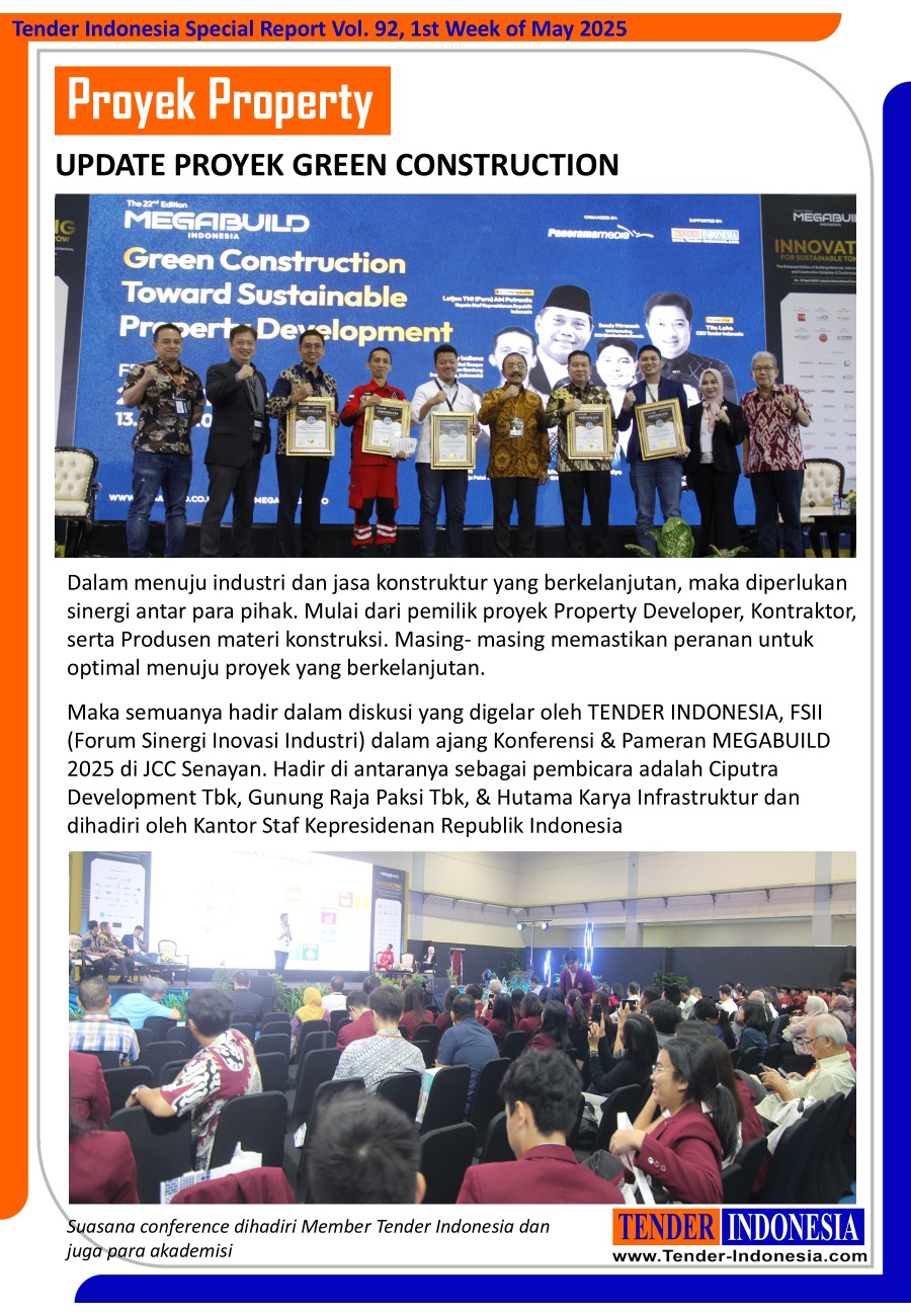 Maka semuanya hadir dalam diskusi yang digelar oleh TENDER INDONESIA, FSII (Forum Sinergi Inovasi Industri) dalam ajang Konferensi & Pameran MEGABUILD 2025 di JCC Senayan. Hadir di antaranya sebagai pembicara adalah Ciputra Development Tbk, Gunung Raja Paksi Tbk, & Hutama Karya Infrastruktur dan dihadiri oleh Kantor Staf Kepresidenan Republik Indonesia