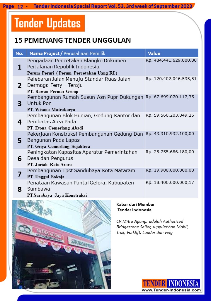 CV Mitra Agung, adalah Authorized Bridgestone Seller, supplier ban Mobil, Truk, Forklift, Loader dan velg