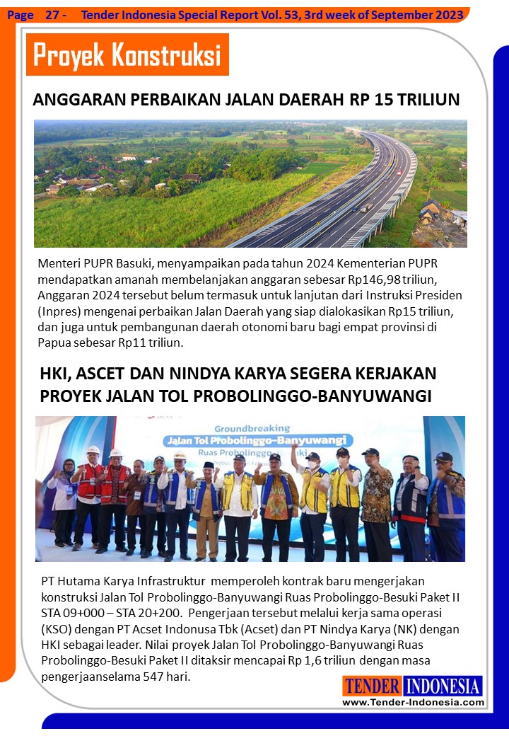 Menteri PUPR Basuki, menyampaikan pada tahun 2024 Kementerian PUPR mendapatkan amanah membelanjakan anggaran sebesar Rp146,98 triliun, Anggaran 2024 tersebut belum termasuk untuk lanjutan dari Instruksi Presiden (Inpres) mengenai perbaikan Jalan Daerah yang siap dialokasikan Rp15 triliun, dan juga untuk pembangunan daerah otonomi baru bagi empat provinsi di Papua sebesar Rp11 triliun.