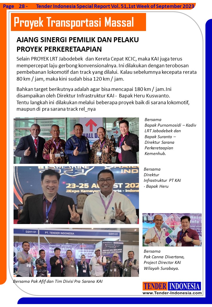 Selain PROYEK LRT Jabodebek dan Kereta Cepat KCIC, maka KAI juga terus mempercepat laju gerbong konvensionalnya. Ini dilakukan dengan terobosan pembebanan lokomotif dan track yang dilalui. Kalau sebelumnya kecepata rerata 80 km / jam, maka kini sudah bisa 120 km / jam.