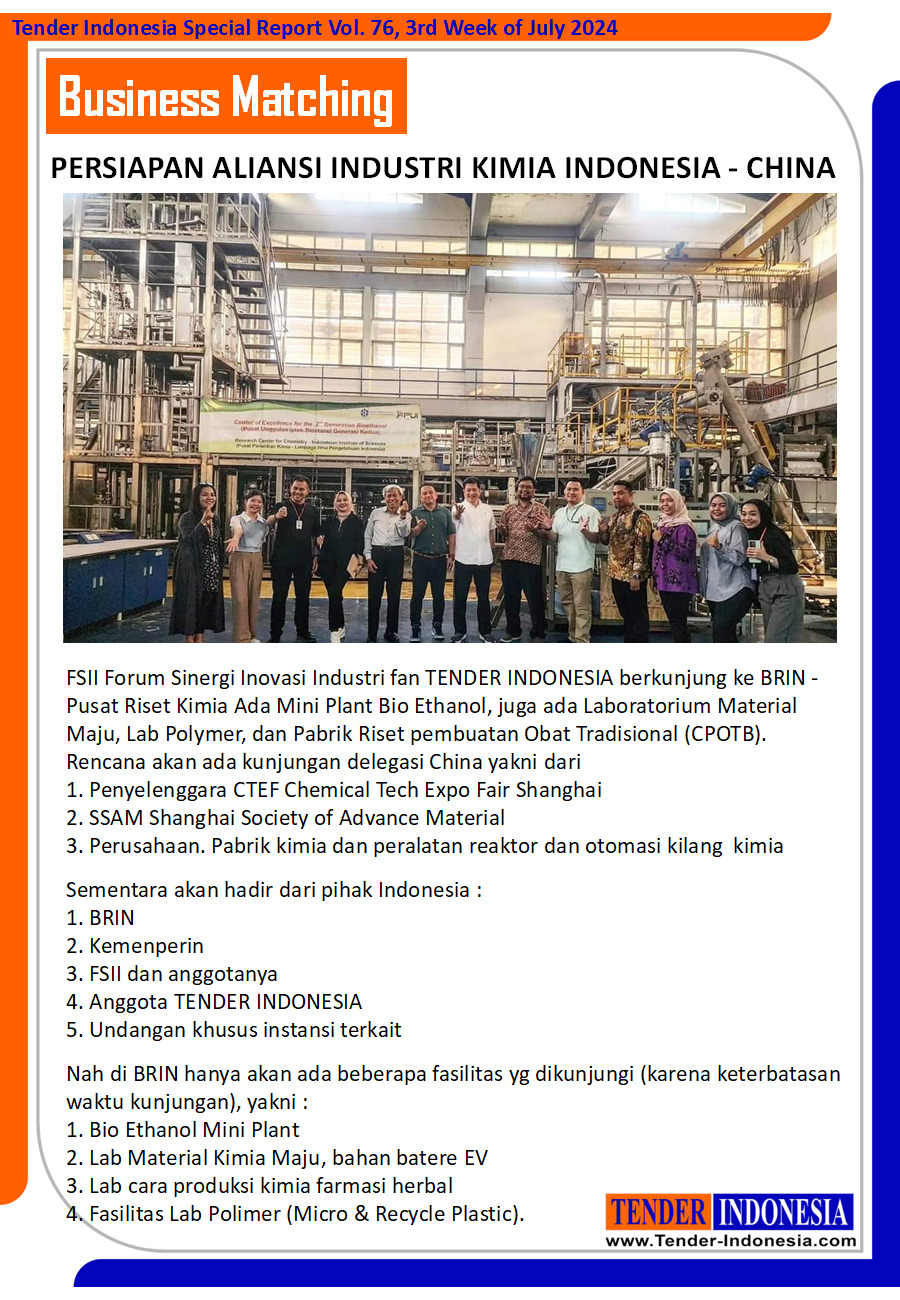 Rencana akan ada kunjungan delegasi China yakni dari 1. Penyelenggara CTEF Chemical Tech Expo Fair Shanghai 2. SSAM Shanghai Society of Advance Material 3. Perusahaan. Pabrik kimia dan peralatan reaktor dan otomasi kilang kimia