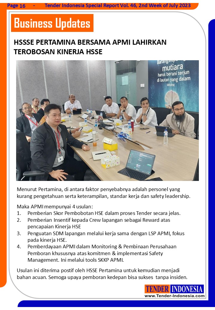 Maka APMI mempunyai 4 usulan: 1.Pemberian Skor Pembobotan HSE dalam proses Tender secara jelas. 2.Pemberian Insentif kepada Crew lapangan sebagai Reward atas pencapaian Kinerja HSE 3.Penguatan SDM lapangan melalui kerja sama dengan LSP APMI, fokus pada kinerja HSE. 4.Pemberdayaan APMI dalam Monitoring & Pembinaan Perusahaan Pemboran khususnya atas komitmen & implementasi Safety Management. Ini melalui tools SKKP APMI.