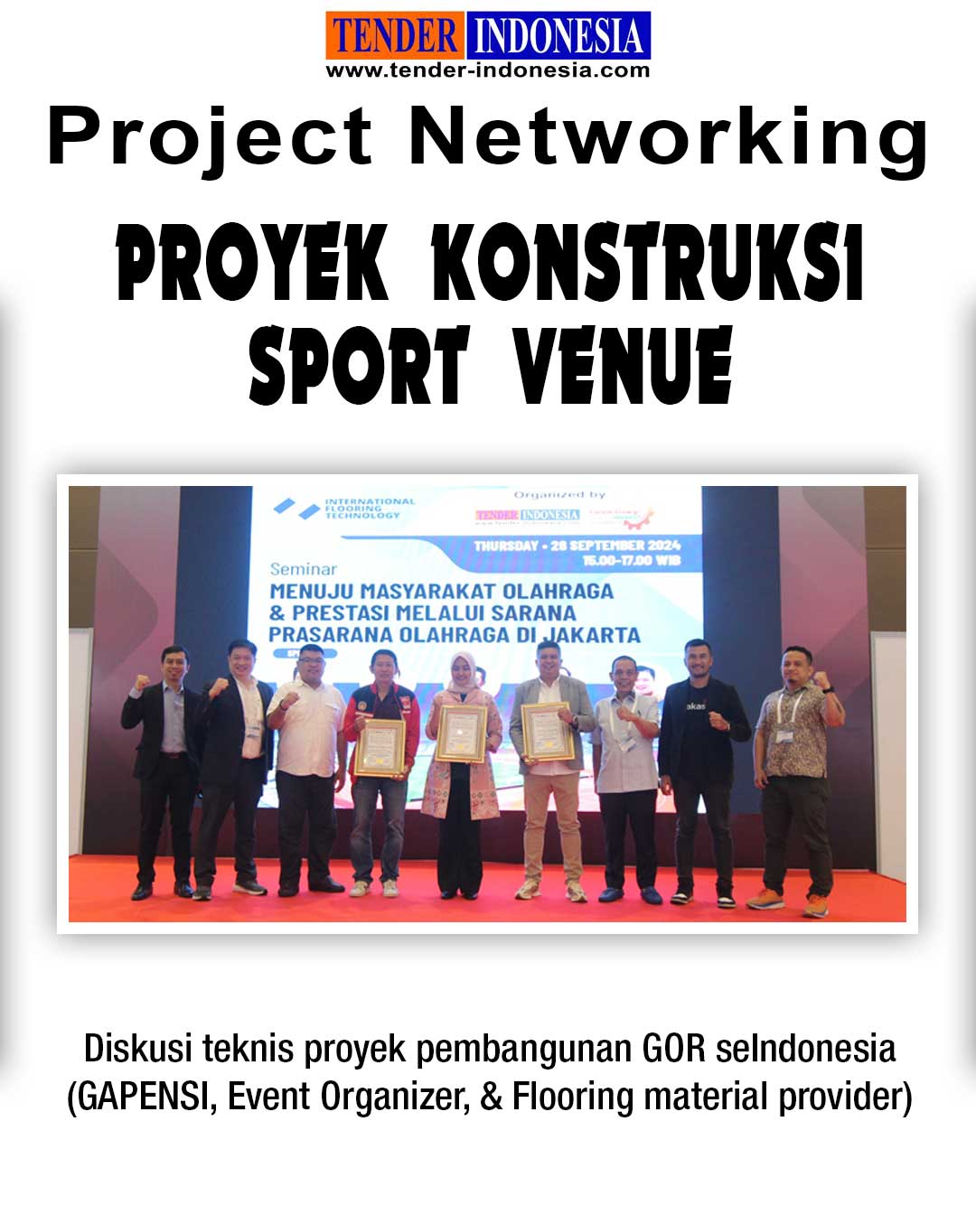 Berbagi solusi proyek konstruksi venue sport, dalam kegiatan Business Matching Member TENDER INDONESIA, dalam ajang pameran FloorTech di Kemayoran.