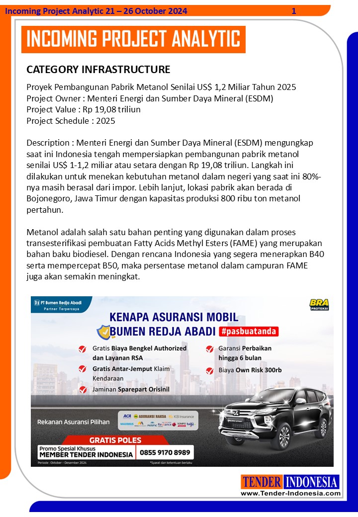 Proyek Pembangunan Pabrik Metanol Senilai US$ 1,2 Miliar Tahun 2025