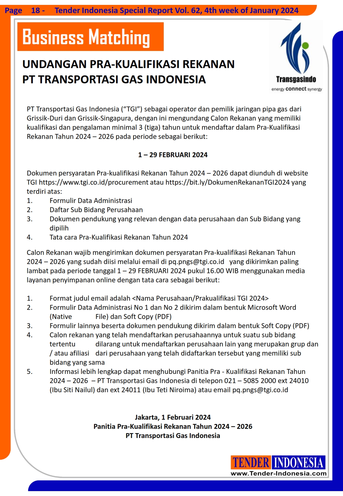 Undangan Pra-kualifikasi Rekanan PT Transportasi Gas Indonesia