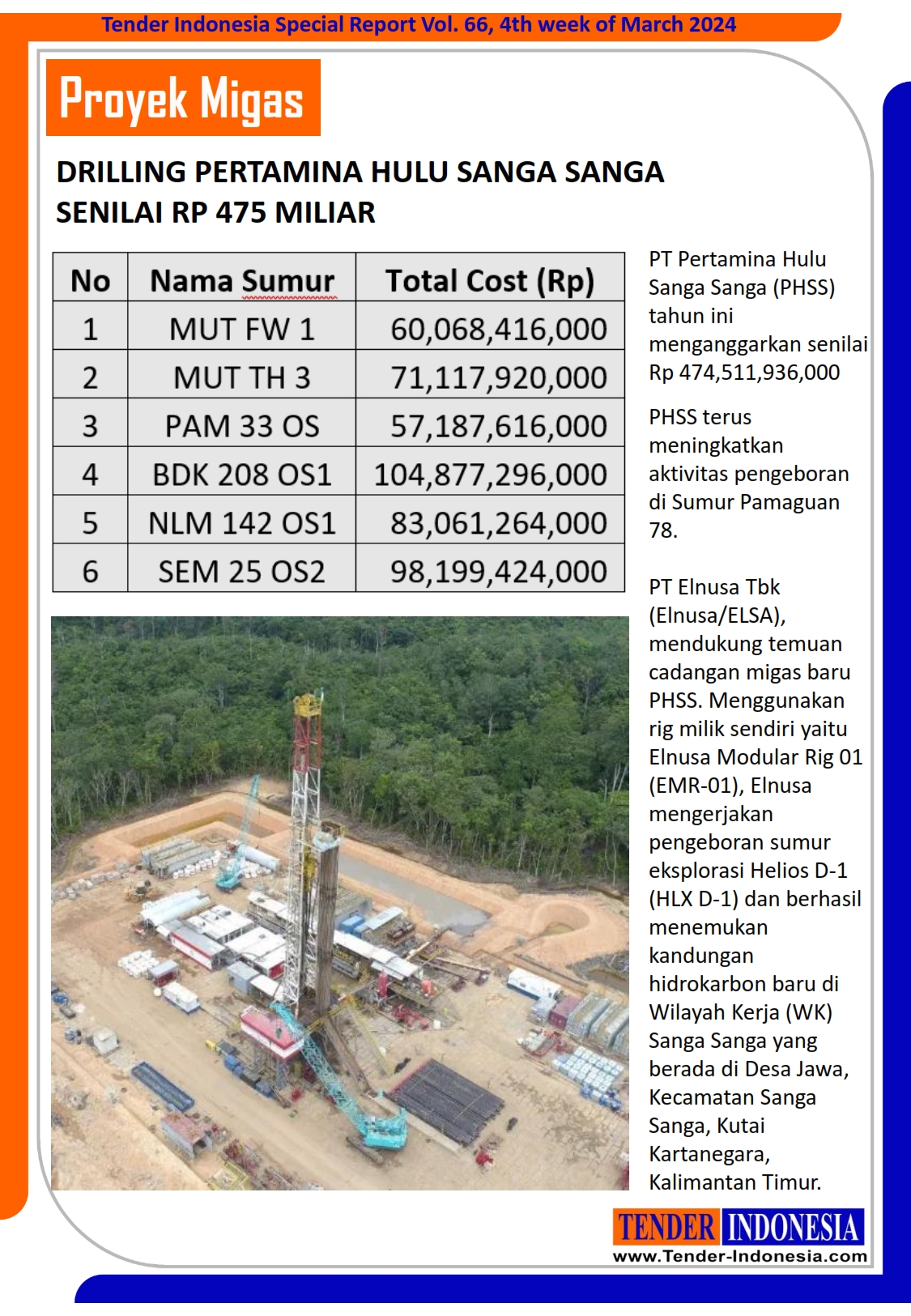Drilling Pertamina Hulu Sanga Sanga Senilai Rp 475 Miliar